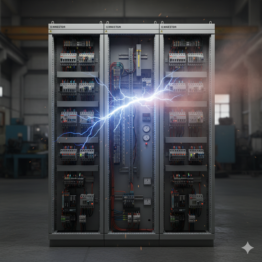 MCC Panel(Motor Control Center)은 여러 전동기를 중앙에서 제어·보호하기 위한 전력 설비로, 주 차단기, 버스바, 개별 모터 회로, MC(Magnetic Contactor, 전자접촉기), 과부하계전기(OLR/EOCR), 제어 릴레이 등으로 구성된다. 일반적으로 동력 전원과 제어 전원이 분리되어 운용되며, 제어 전원은 110VAC 또는 24VDC가 사용된다. 순간정전은 수 ms에서 수백 ms 수준의 매우 짧은 전원 상실이지만, MC 릴레이 코일은 전압이 일정 시간 이상 유지되지 않으면 즉시 탈락하는 특성을 가지므로, 이와 같은 짧은 정전에도 모터가 불의로 정지할 수 있다.